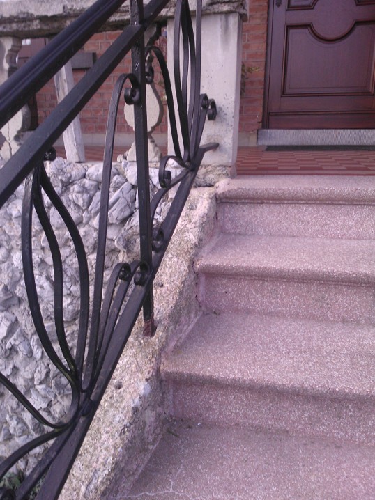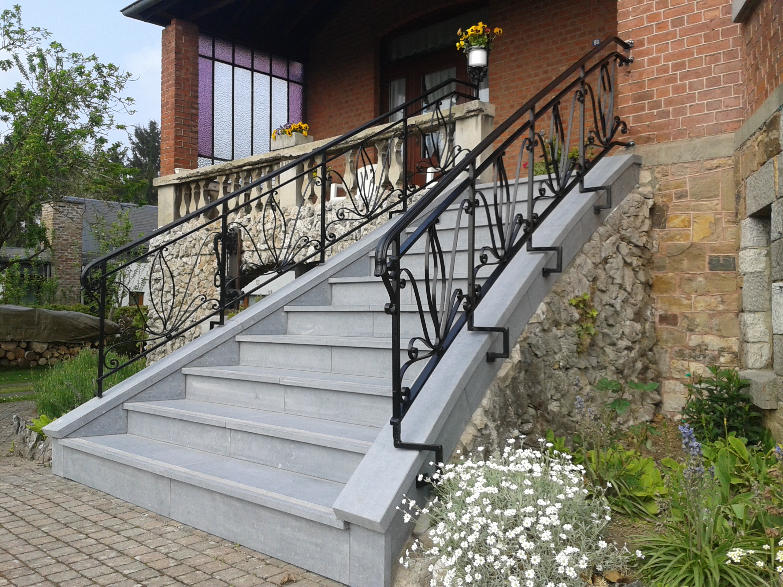 Aprés démontage de la situation existante, nous avons recouvert l'escalier de pierre bleue du Hainaut. Les ferroneries, quant à elles, ont été démontées, sablées, resoudées, remise en peinture et reposées.